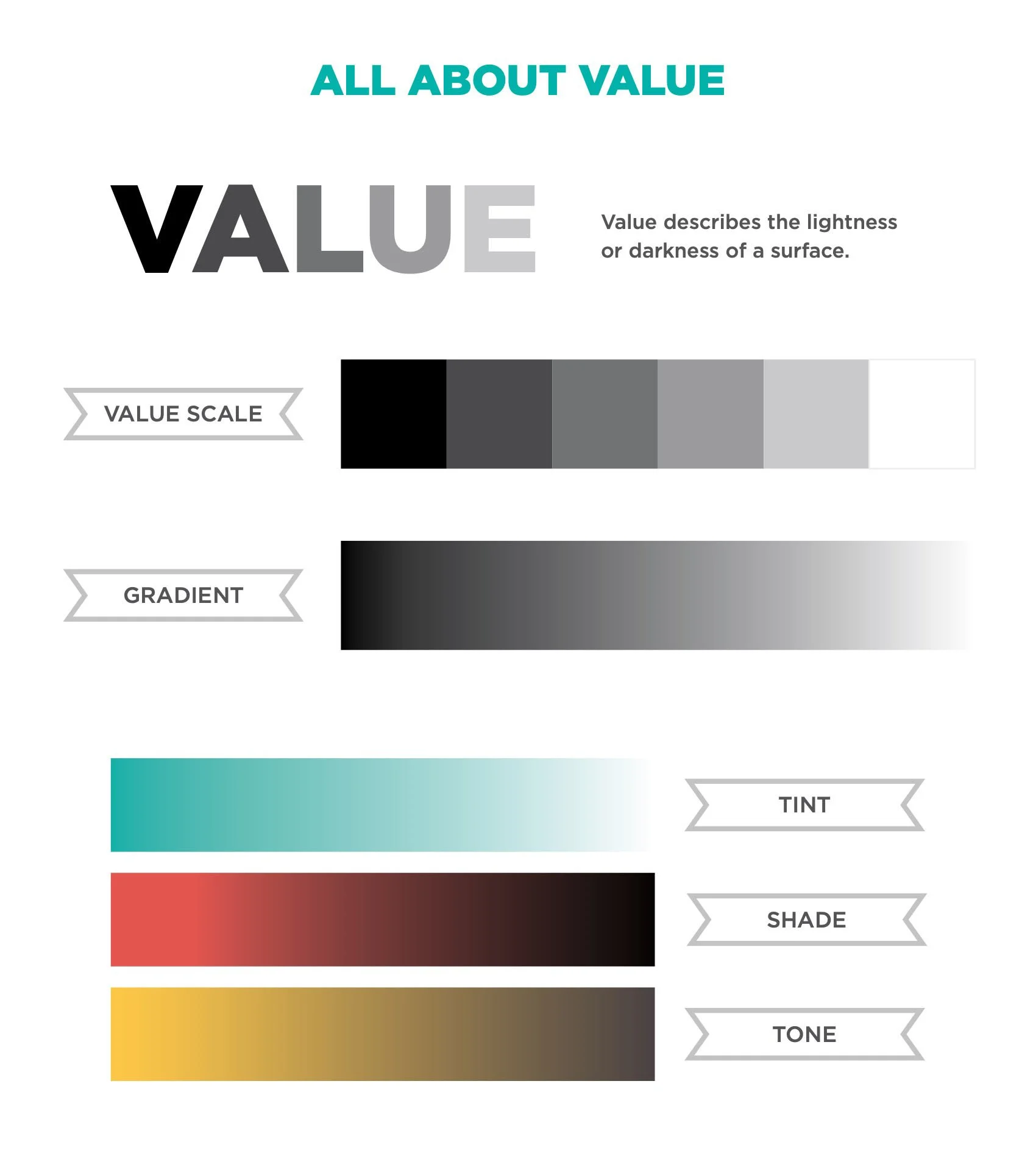 value- the difference in lightness or darkness of a particular color